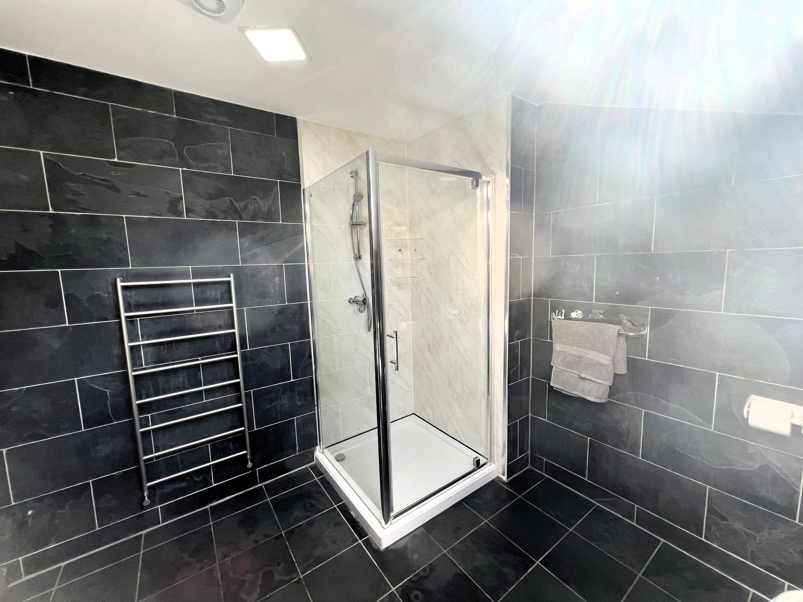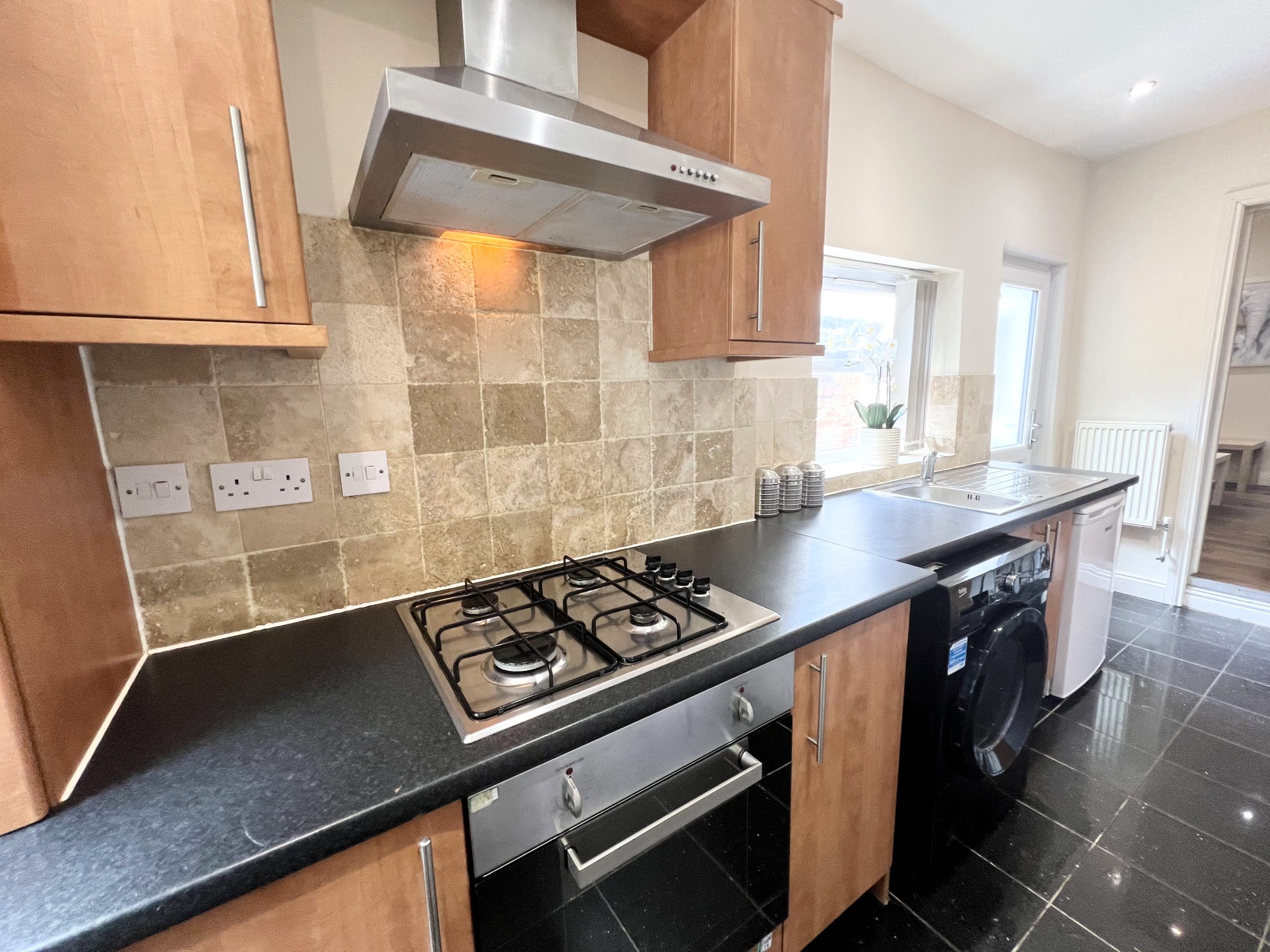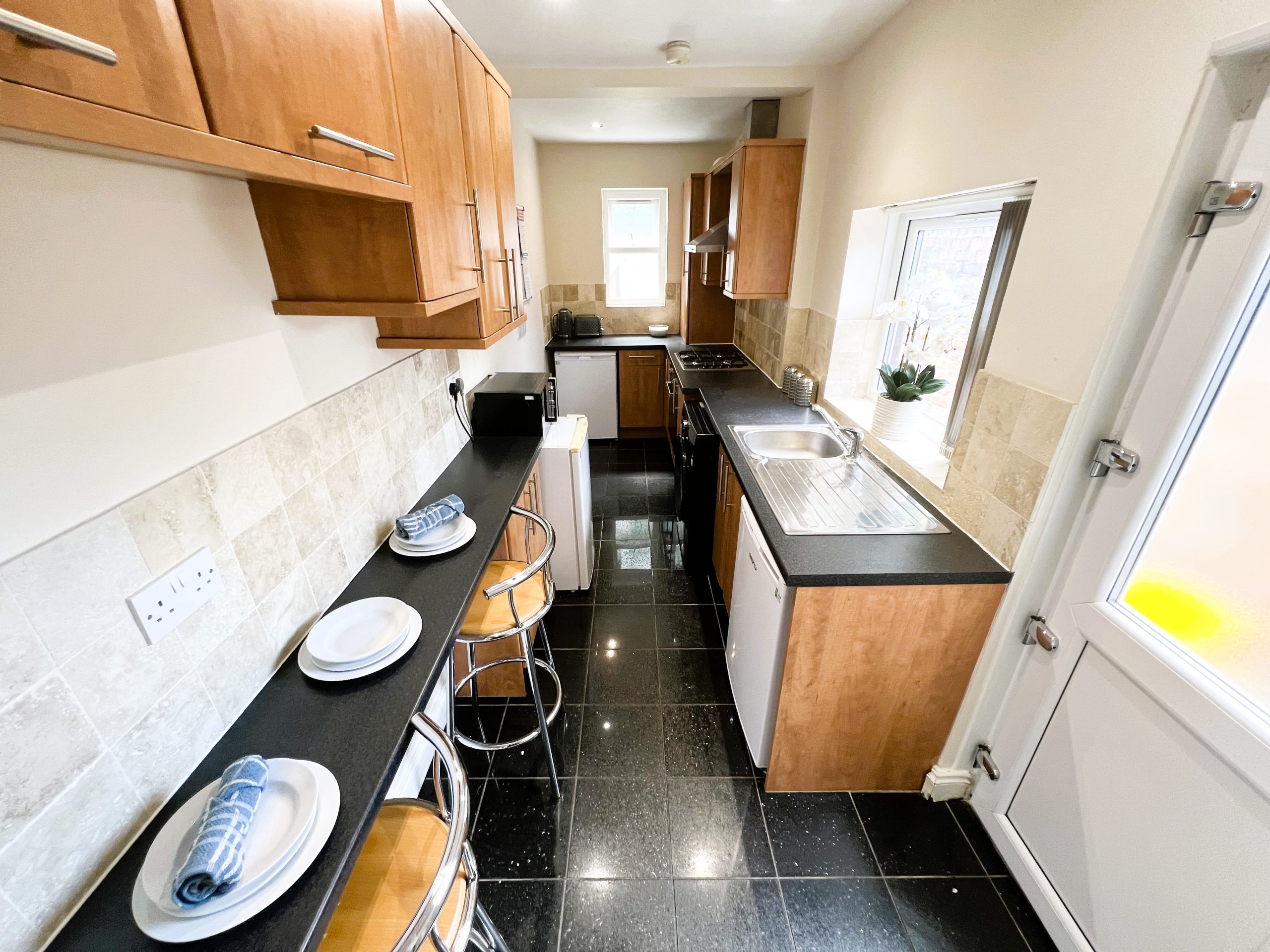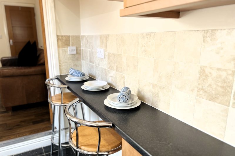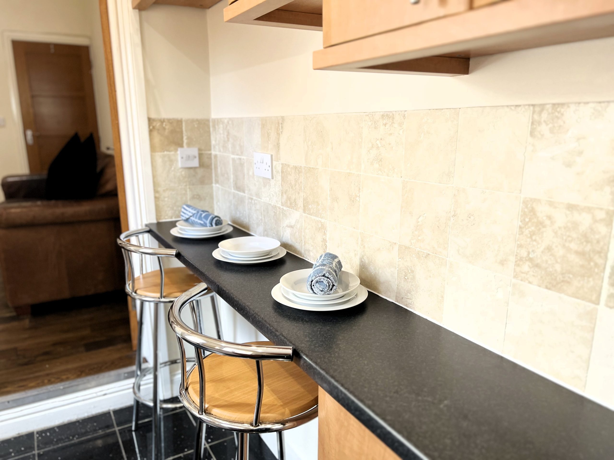 The property features a well – equipped kitchen with all essential appliances. The cosy separate living room features a wall mounted 50” LED TV, comfortable sofas, coffee table and a Henry Hoover!