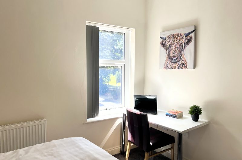 All three bedrooms are generously sized, furnished with double beds complemented by memory foam mattresses, spacious wardrobes, desk and chair.