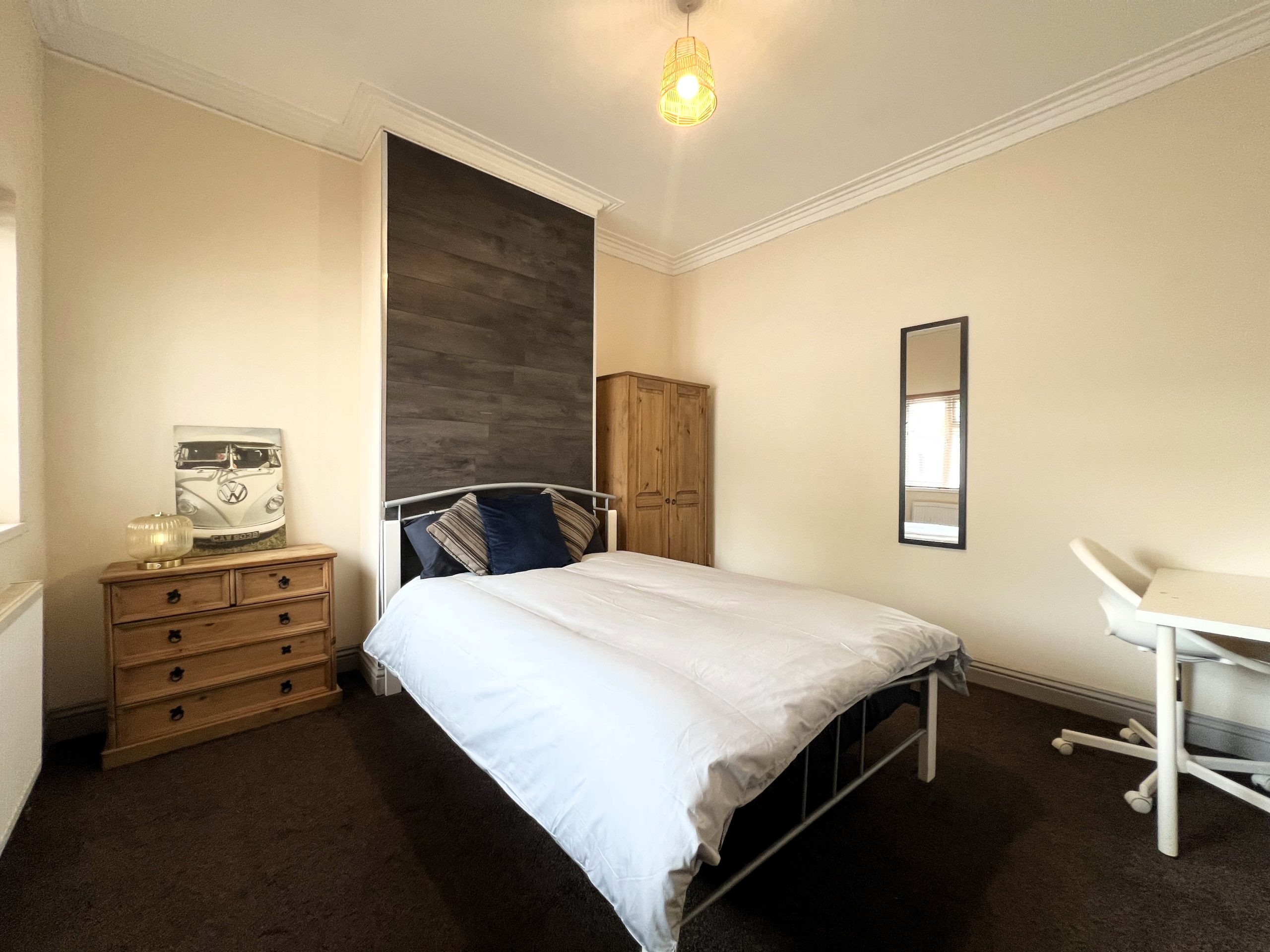 The property comprises 5 large double bedrooms each equipped with memory foam mattresses, desk, chair, wardrobes, drawers and much more!