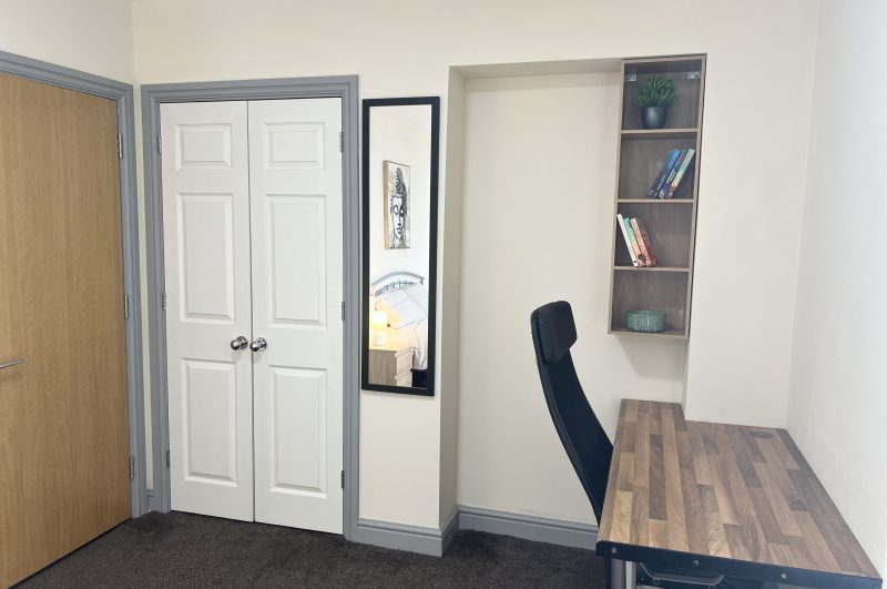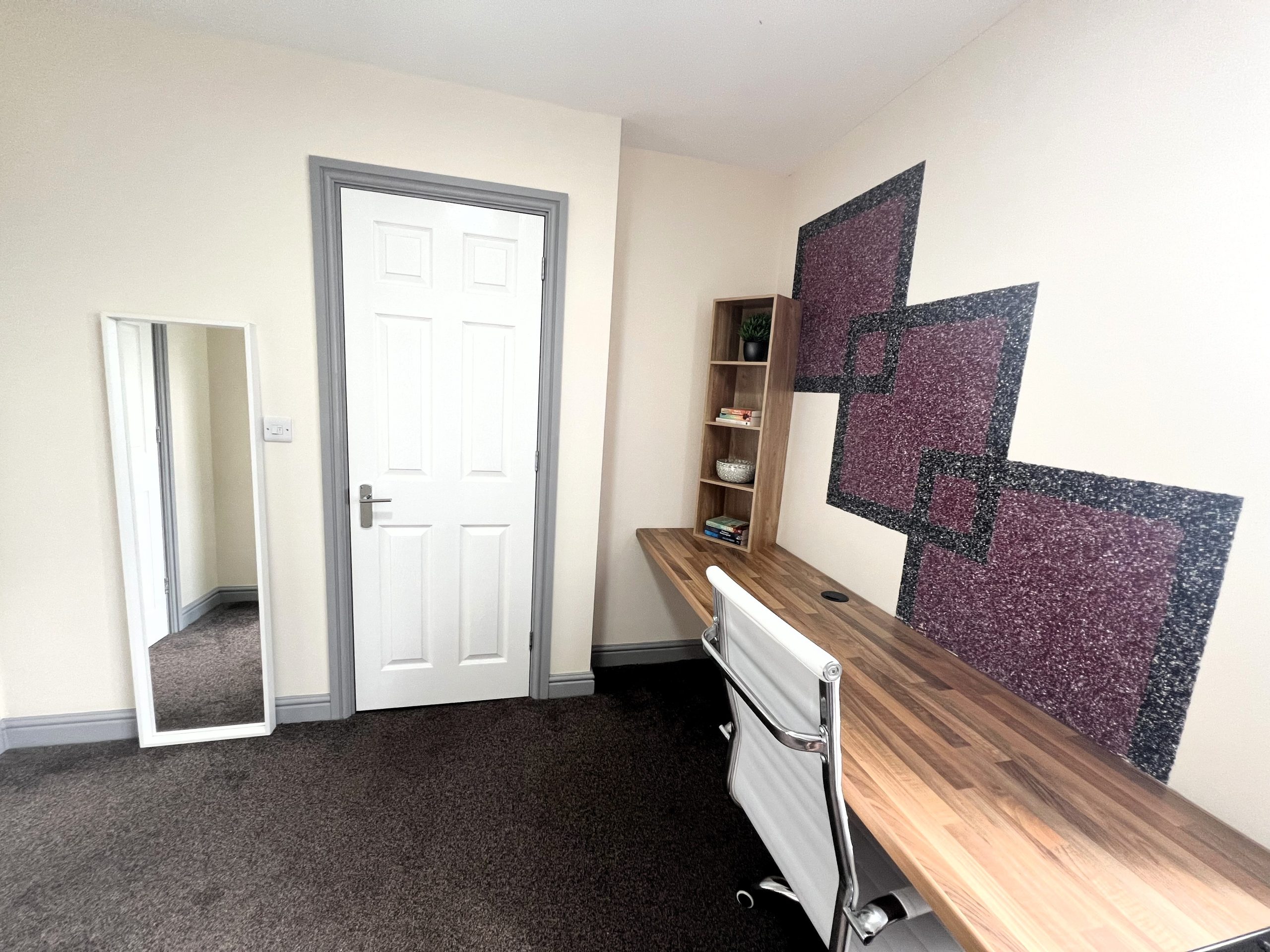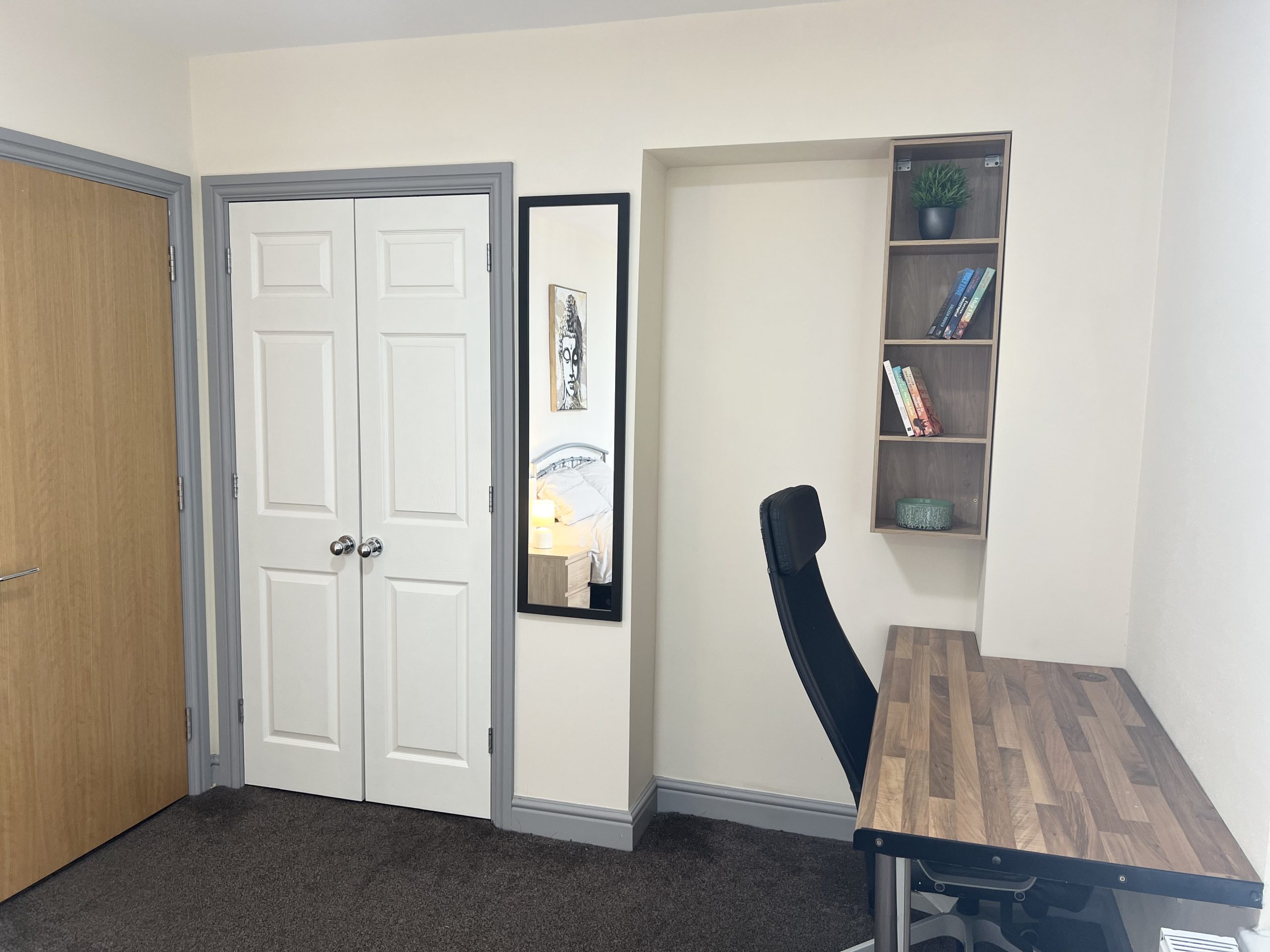 Each of the 3 double bedrooms is tastefully furnished with a double bed with comfy memory foam mattress, built in wardrobe, study desk and chair.
