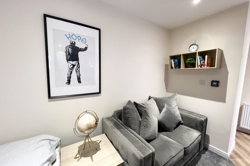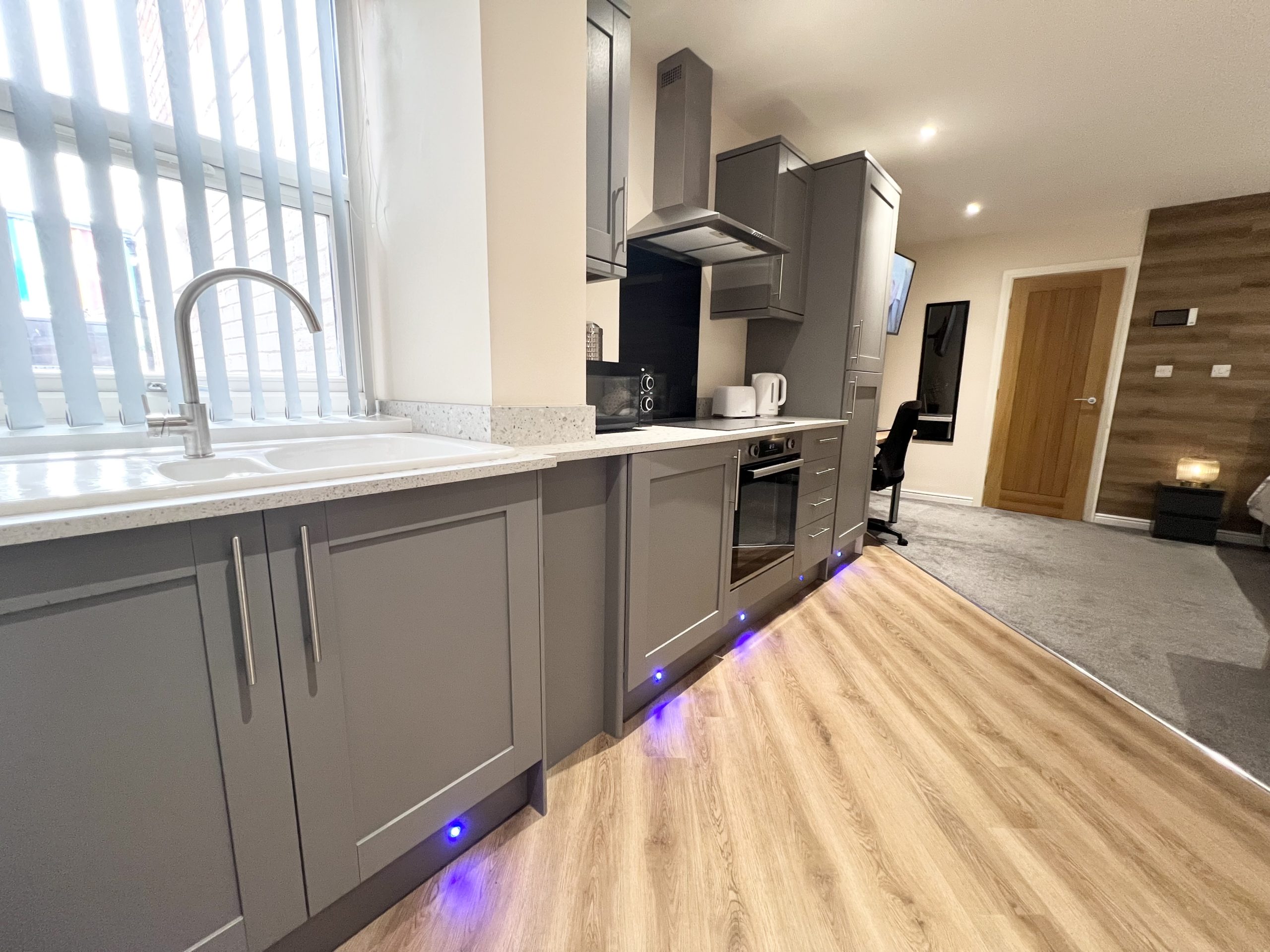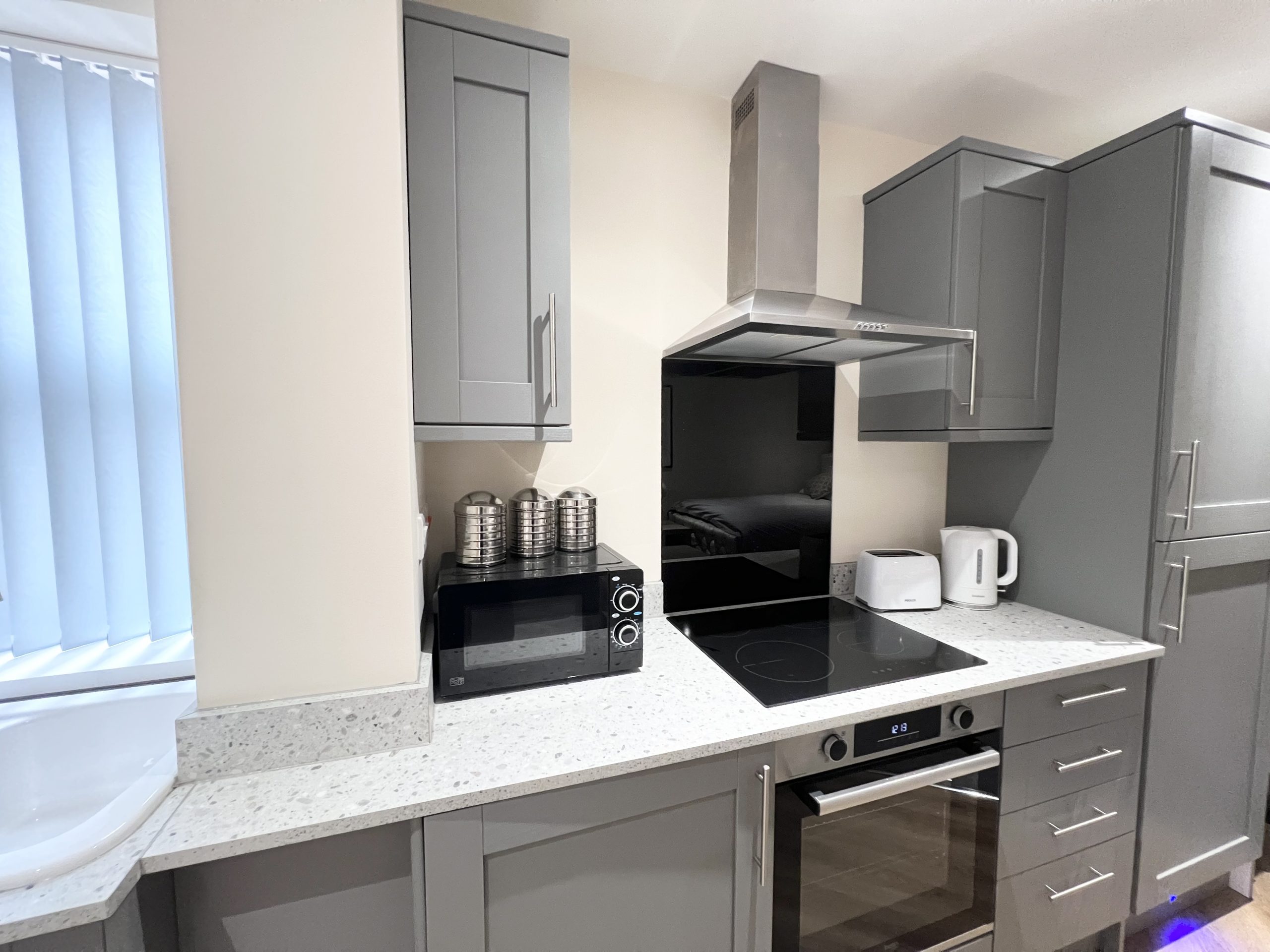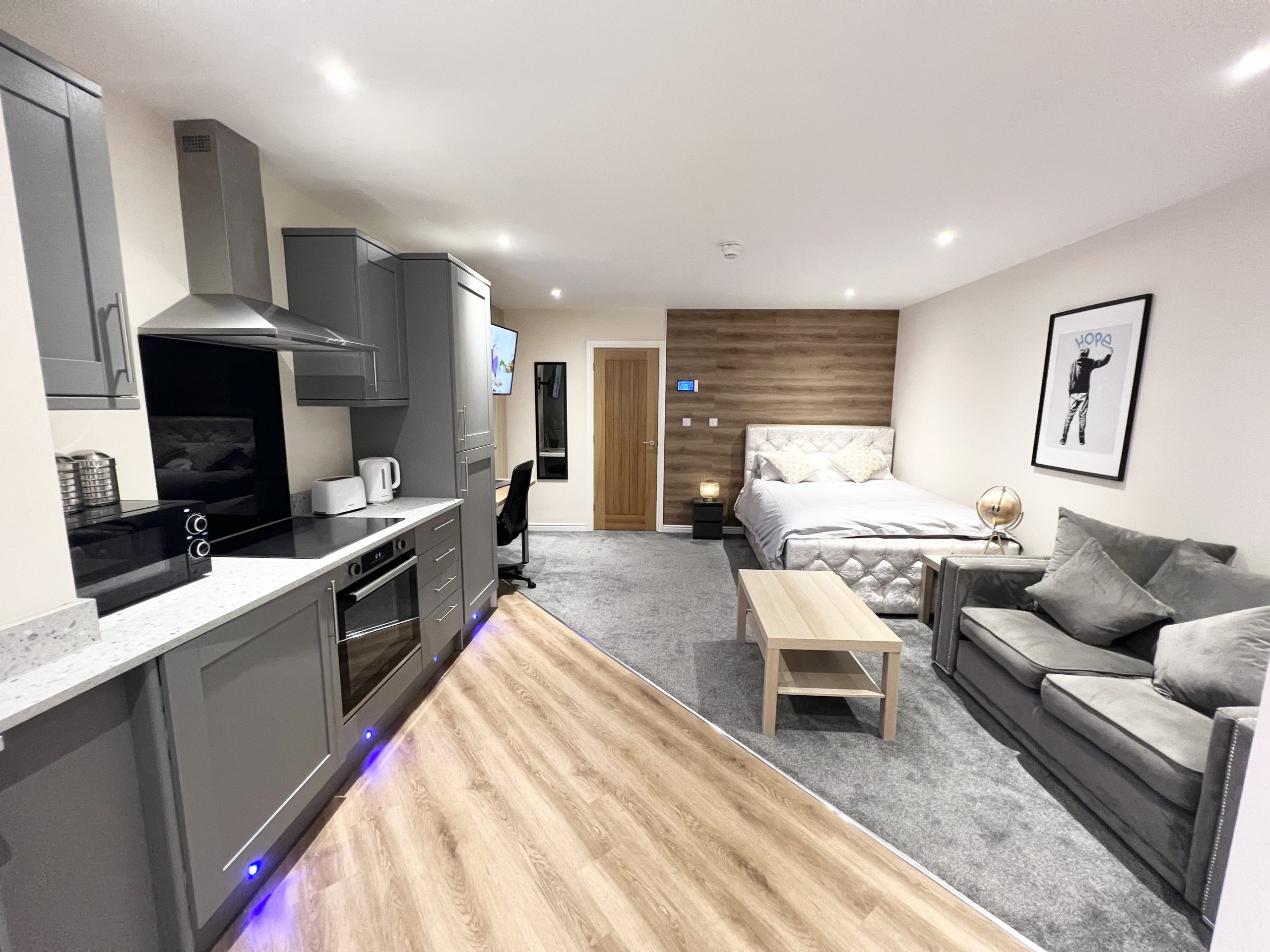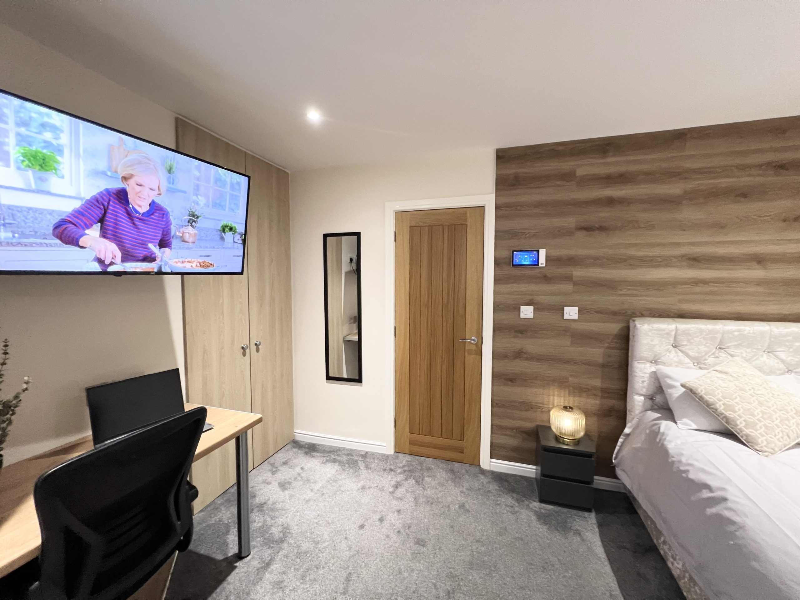This apartment spans across a generous 30.36 sqm showcasing luxurious furnishings.Featuring a deluxe double bed complemented with a 1000 pocket memory foam mattress, a spacious built in wardrobe, two-seater embellished sofa and built in study desk and chair.The apartment boasts a well – equipped, modern shaker style kitchen with a full-size built-in oven/hob, fridge / freezer, washer / dryer and microwave.Additionally, the apartment features a fabulous hotel quality en – suite with power shower and a high gloss storage vanity basin.The property features CCTV throughout the communal corridors and enclosed outdoor area. As well as an intercom system and app controlled central heating.Ideally suited for a student couple to share or single occupancy!Contact us to arrange your viewing today, you don’t want to miss out!