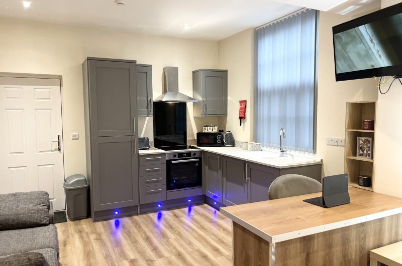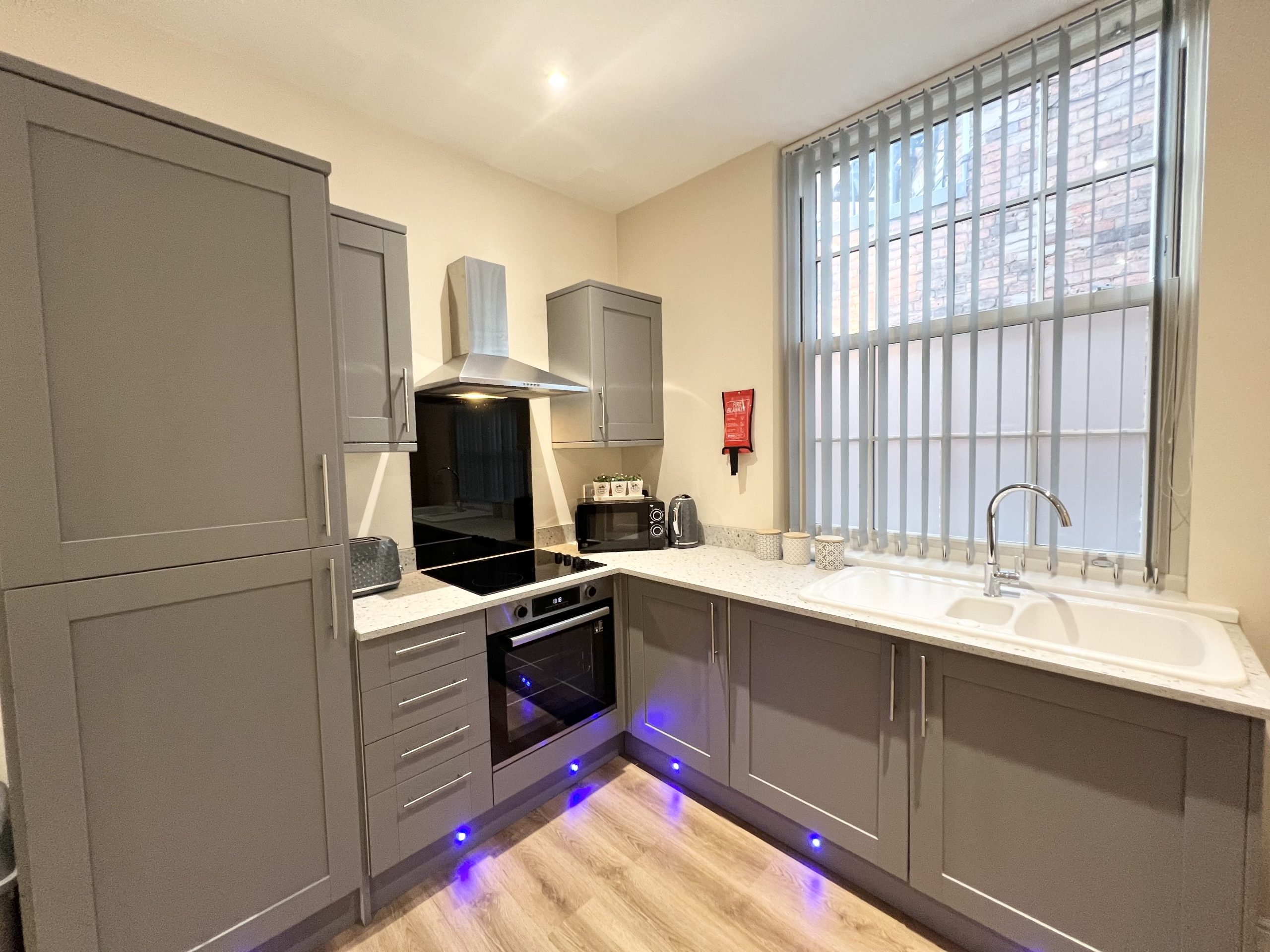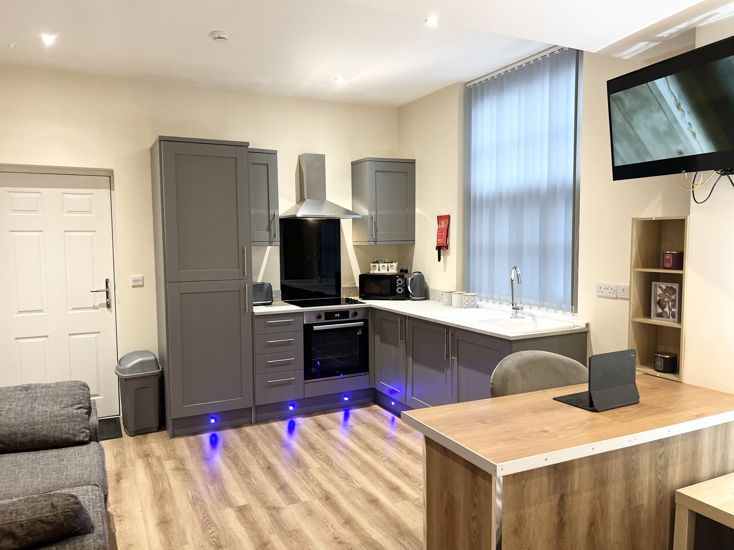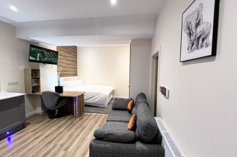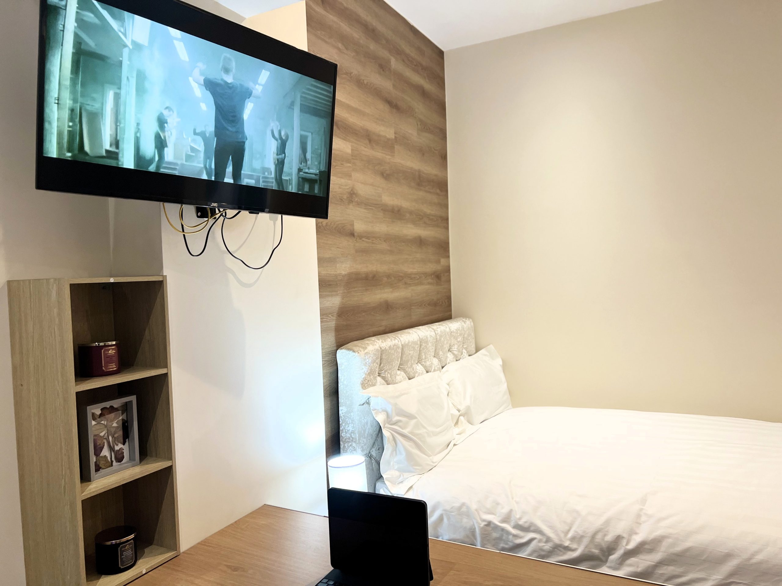 Stepping into the property you are met with the perfect blend of comfort and luxury! Fully furnished with a 43” wall mounted Smart TV, double bed complemented by a memory foam mattress, and a large built – in wardrobe.The lounge area is furnished with a comfortable two – seater sofa, coffee table, and a built in study desk and chair creating the perfect environment to study and relax!The fully fitted modern contemporary shaker style kitchen is equipped with a built in oven/hob, integrated fridge/freezer, washer/dryer, microwave and ample storage.The apartments added feature of the luxurious en – suite complete with a power shower and storage vanity basin provides maximum comfort!The properties extra amenities include double glazing, central heating controlled via a mobile app, intercom system, CCTV coverage in all communal corridors and a secure enclosed outdoor space.Ideally suited for a student couple to share or single occupancy.Don’t miss the chance to make this luxurious studio your own!For more details and to arrange a viewing please contact us on 01332 605215 or email info@randrhousing.co.uk