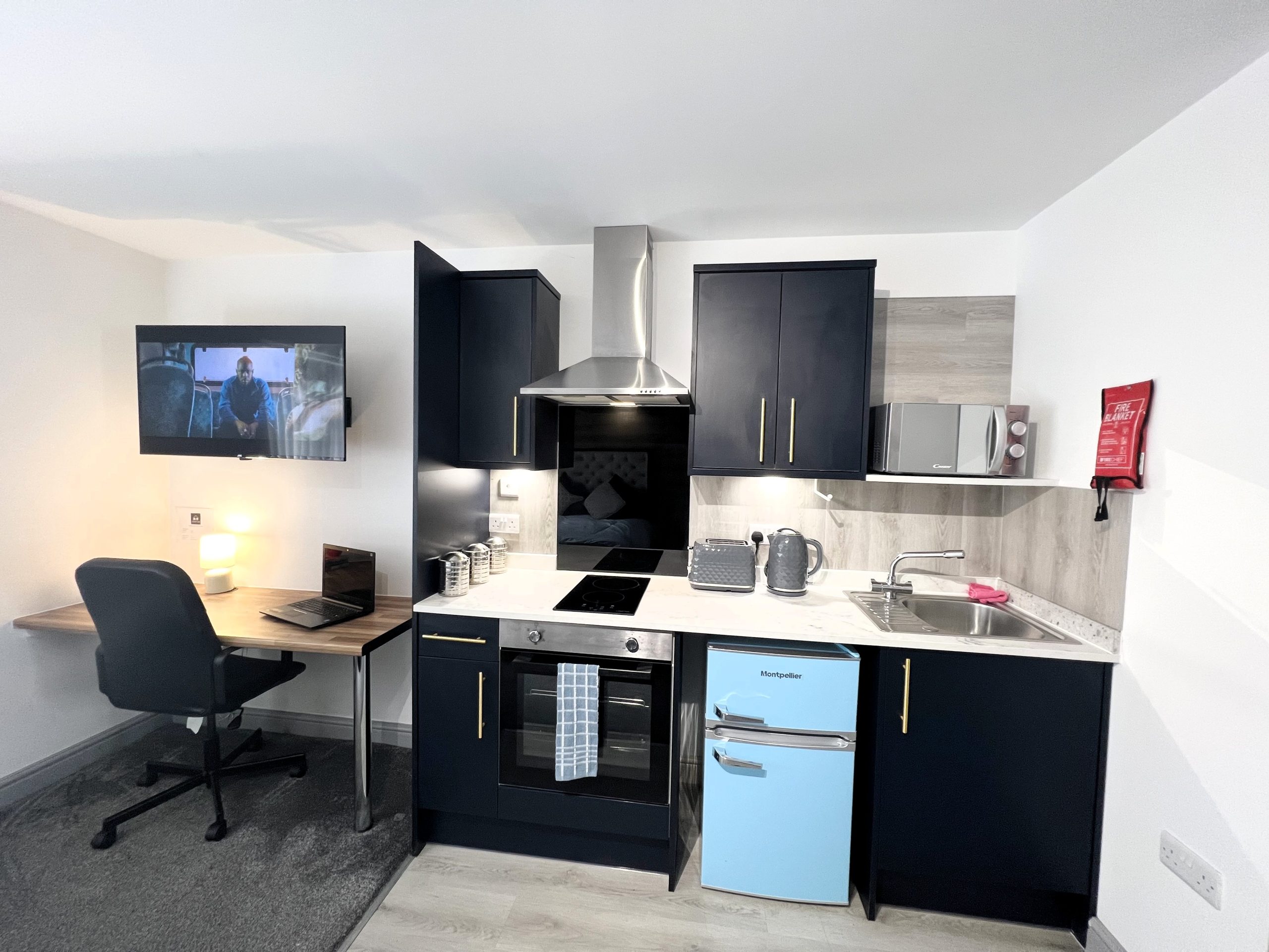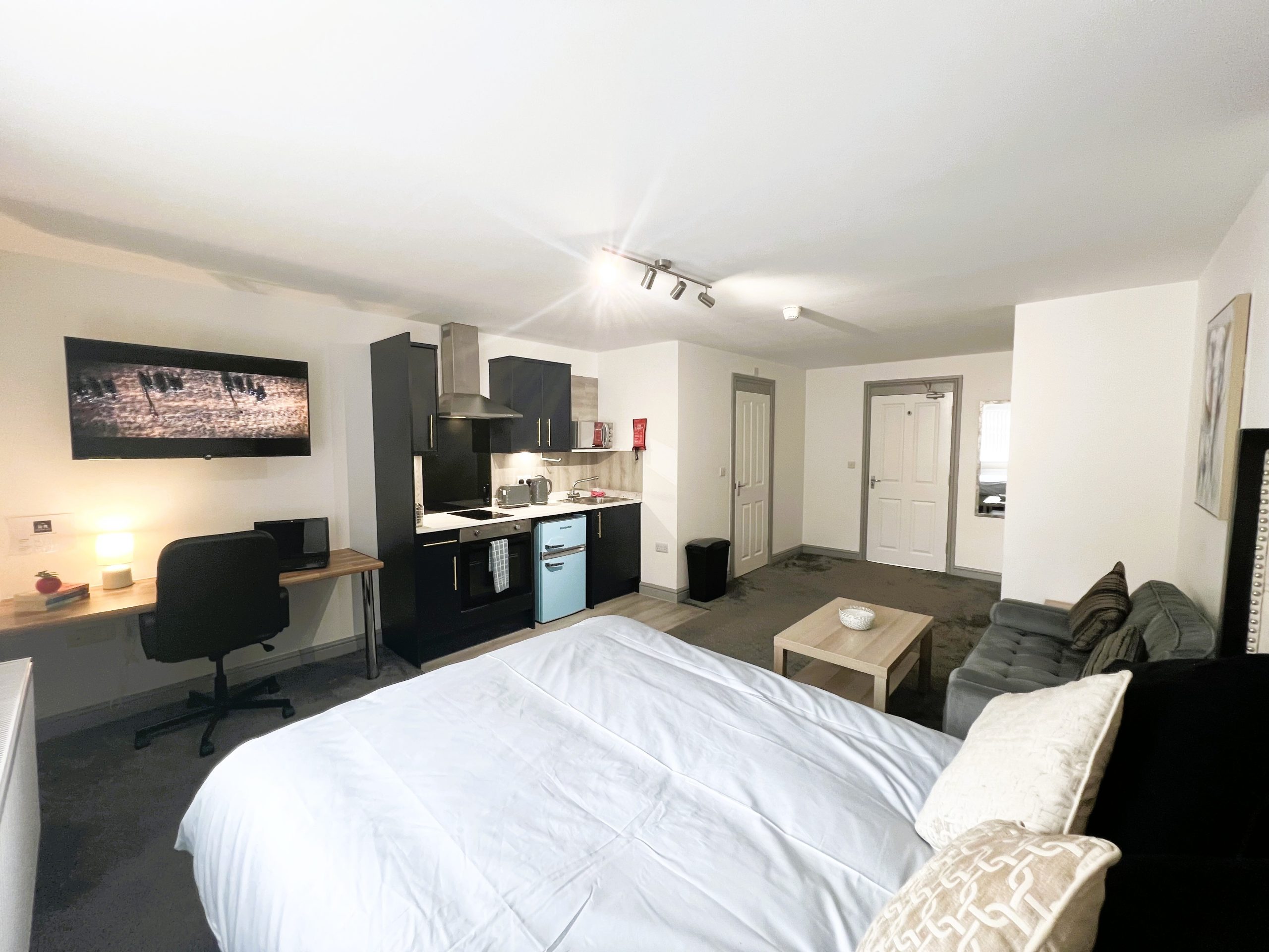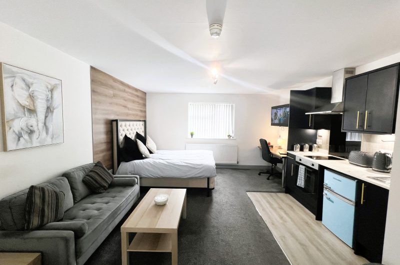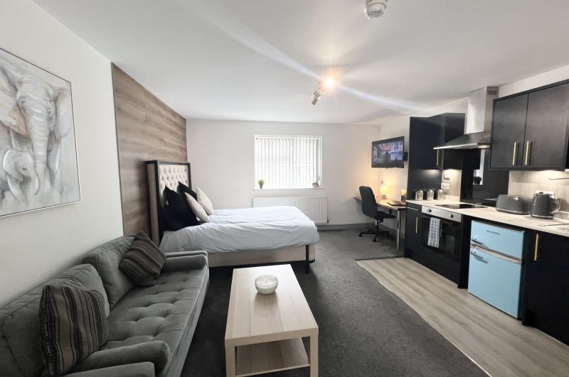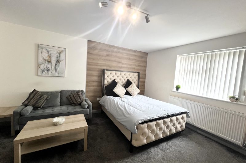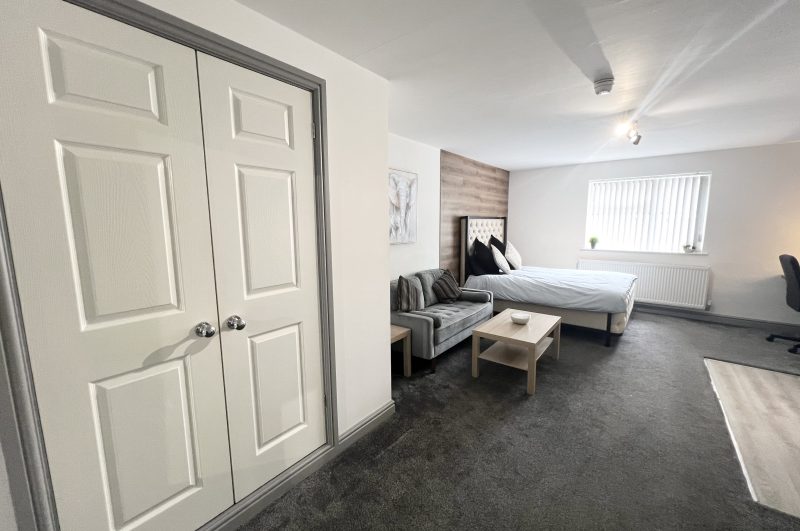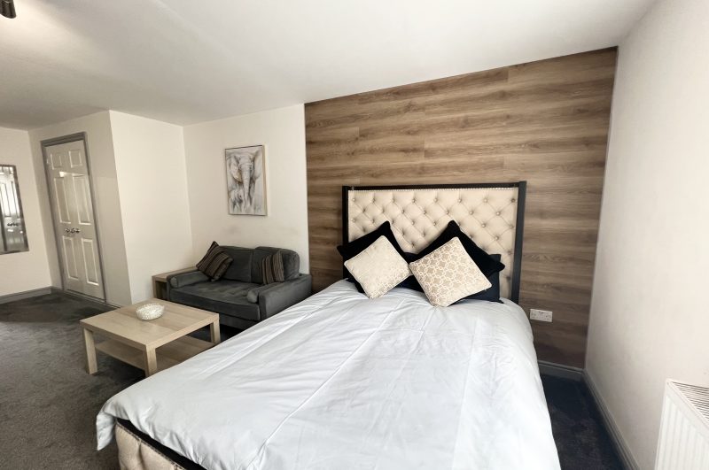 This all – inclusive apartment, nestled within a secure private gated complex, offers spacious and comfortable living spaces, making it an excellent choice for students!The apartment seamlessly combines the bedroom, living area, and modern kitchen, creating a harmonious living environment. It features elegant furnishings, including new high-quality carpets, a comfortable two – seater sofa, coffee table, 43” wall mounted Smart TV, built in wardrobe, desk with chair, wall hung mirror, and a double bed with a cosy memory foam mattress.The fully equipped modern kitchen features a microwave, built in oven/hob and fridge/freezer. The en suite boasts contemporary fixtures, sleek designs, and refreshing power showers.The property also features a separate laundry room equipped with several washing machines and tumble dryers, with the costs covered in the rent!Situated in a prime location, this apartment offers easy access to University campuses, nearby amenities, and public transport. Ideally suited for a student couple to share or for single occupancy.For more details and to arrange a viewing please contact us on 01332 605215 or email info@randrhousing.co.uk